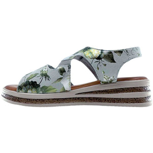 MOLLI by CASSINI is a stylish wedge sandal, featuring a beautiful floral embossed leather & lightweight, textured outsole. Offering two adjustable Velcro straps for a perfect fit and a cushioned leather insole, MOLLI blends feminine charm with everyday comfort and practicality.