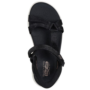 Experience an effortless way to wear your favorite walking sandal with SKECHERS Hands Free Slip-ins®: GO WALK® FLEX - ILLUMINATE. Designed with a heathered mesh upper with a touch of shimmer, this strappy & lightweight sandal features an adjustable Velcro strap, Ultra Go® cushioning and a contoured footbed and Heel Pillow™, for all day comfort. Simply slip-in and let those feet do the walking!