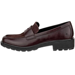 Glide through your day in METROPOLE VIENNA by ECCO - a chic and timeless penny loafer that offers signature detailing and height, in a sophisticated street-style form. Crafted with full-grain premium leather and a lightweight lugged sole, VIENNA will effortlessly see you through from work to weekend, all year round. Gorgeous, rich chocolate colourway!